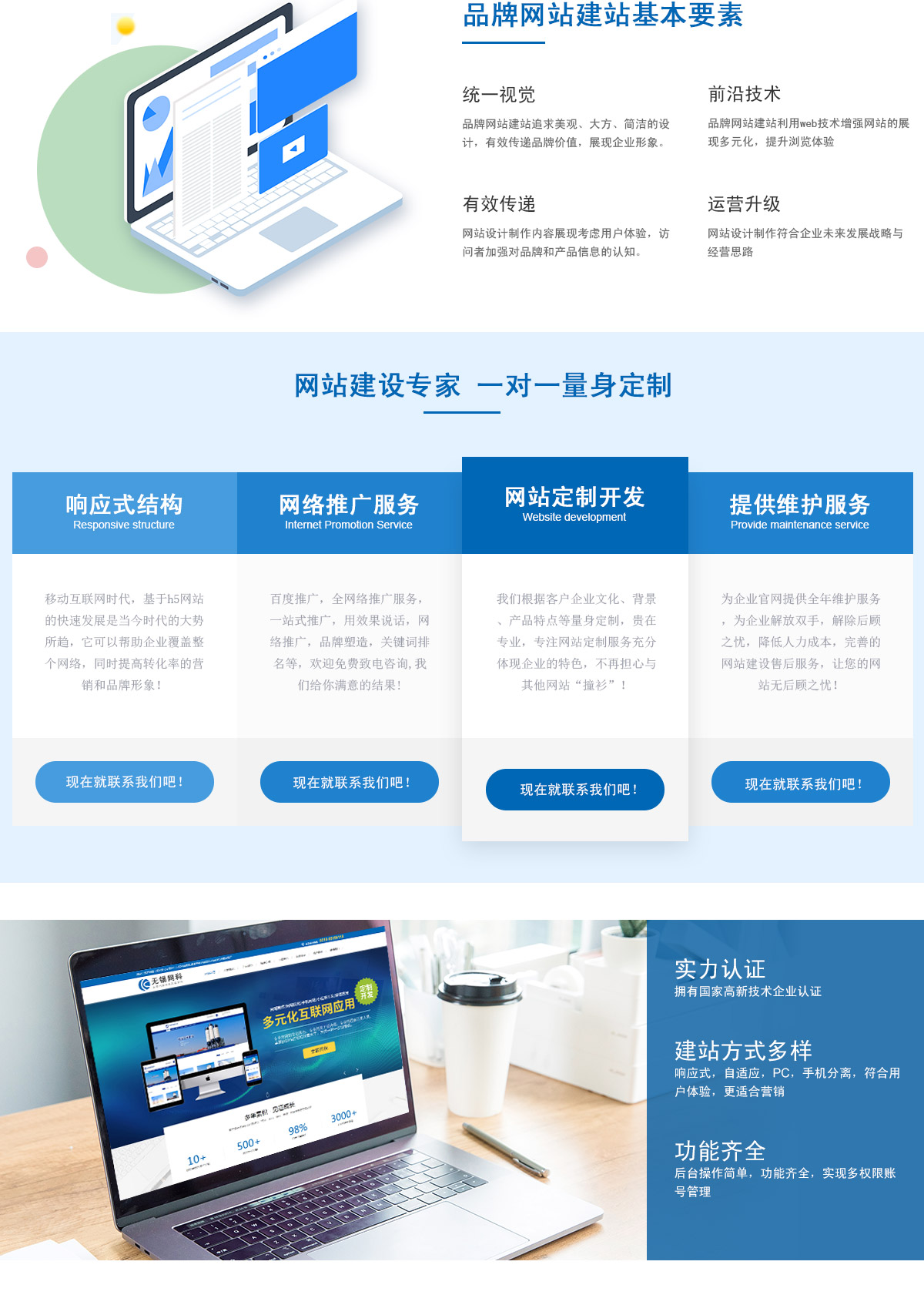 適用于剛起步的小微企業(yè),剛接觸互聯(lián)網(wǎng),嘗試通過網(wǎng)絡(luò)宣傳展示,提供基本的互聯(lián)網(wǎng)應(yīng)用服務(wù),從企業(yè)概況,企業(yè)文化,企業(yè)產(chǎn)品,企業(yè)發(fā)展等進(jìn)行全方位展示為主,適合產(chǎn)品不多或服務(wù)相對簡單的企業(yè),投資少,同樣達(dá)到宣傳企業(yè)的效果,為未來塑造與發(fā)展企業(yè)品牌奠定基礎(chǔ)。